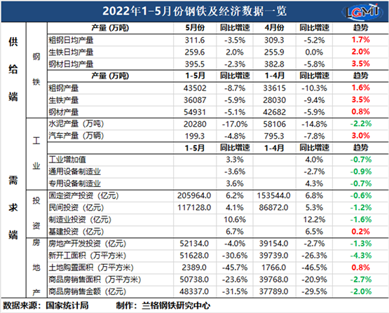 蘭格追蹤:1-5月鋼鐵及經(jīng)濟數據一覽