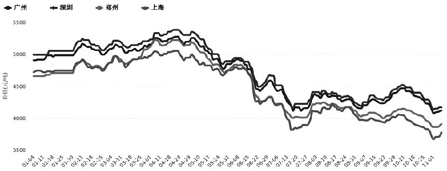 國慶節后黑色系期貨破位下跌,整體原料鐵礦石和雙焦大幅走低,鋼材期貨價(jià)格也跟隨下行。由于需求環(huán)比改善不明顯,現貨價(jià)格上漲乏力,期貨價(jià)格更是一路向下。疊加建材市場(chǎng)淡季即將來(lái)臨,需求預期進(jìn)一步弱化,鋼材期貨價(jià)格跌入冰點(diǎn)。以滬鋼2301合約為例,其價(jià)格從節后開(kāi)市的***高3893元/噸跌到***低3389元/噸,月內跌幅達15%以上,并創(chuàng )近兩年來(lái)新低。