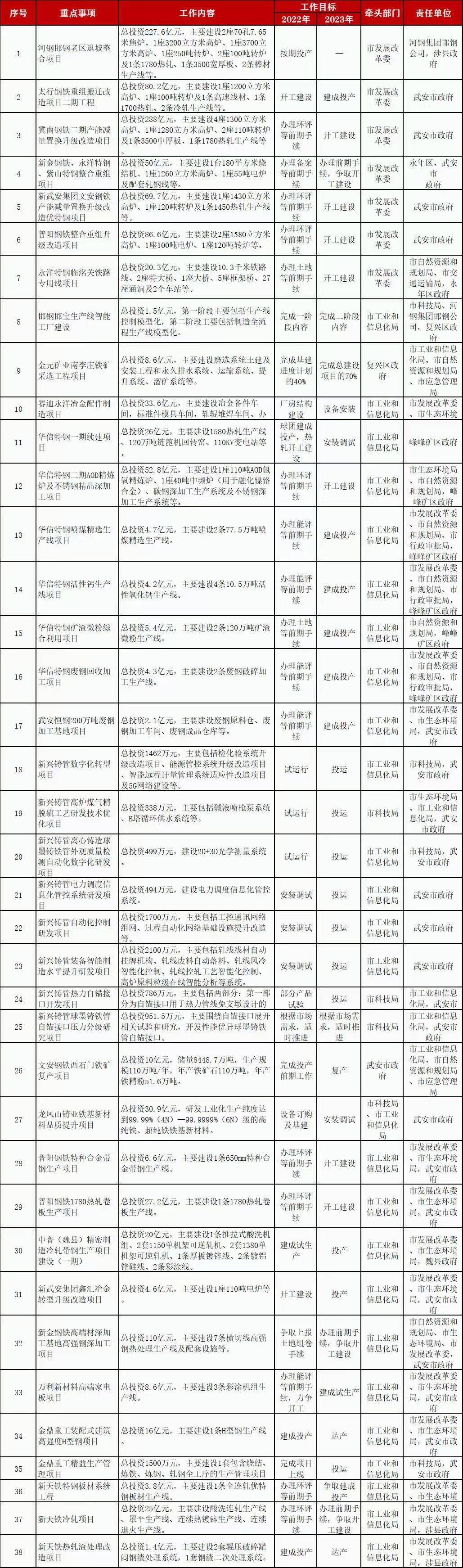 隨《方案》出臺的還有38個(gè)鋼鐵項目具體情況及近兩年工作目標,詳情如下: