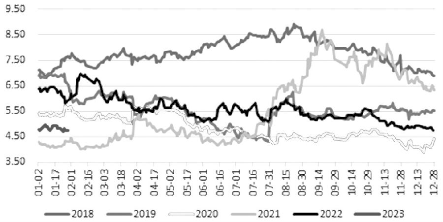 綜合以上判斷,目前鐵礦石價(jià)格估值偏高;螺礦比為4.76,接近歷史運行區間的下邊界;鋼廠(chǎng)利潤目前也處于盈虧邊緣,下方空間有限,因此建議考慮做多螺礦比策略,即按照合約價(jià)值配比進(jìn)行多螺紋空鐵礦的套利策略。但需要注意的是,目前黑色系市場(chǎng)的主要邏輯仍是下游需求復蘇預期支撐螺紋鋼價(jià)格,并進(jìn)一步帶動(dòng)上游原料鐵礦石的價(jià)格,螺礦比或將繼續在低位運行一段時(shí)間。一旦3月份之后,螺紋鋼實(shí)際需求逐步走好,而鐵礦石供給端壓力增加,二者基本面的相對強弱關(guān)系將發(fā)生變化,螺礦比或將快速向上回歸。(來(lái)源:期貨日報?作者單位:中原期貨)