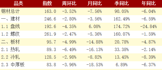 1. 全國鋼材社會(huì )庫存連續4周下降,建材庫存下降速度有所加快,板材庫存下降速度略有加快