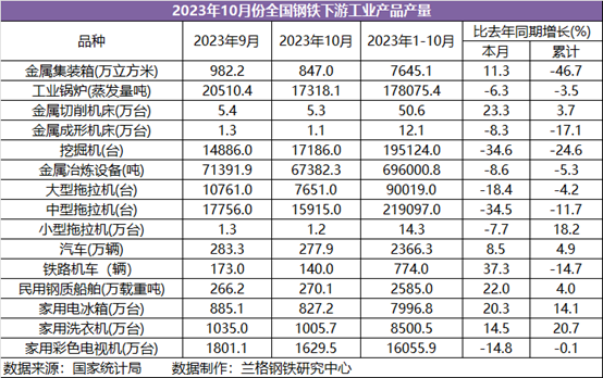 蘭格追蹤:2023年1-10月份全國鋼鐵下游工業(yè)產(chǎn)品產(chǎn)量